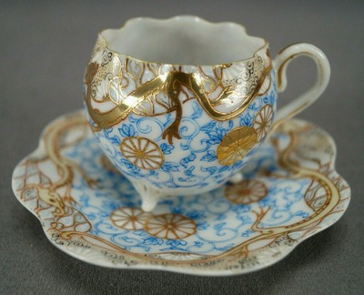 0 Response to "Antique Cobalt Blue Saki Cup With Gold Trim and Porcelain Flowers"
